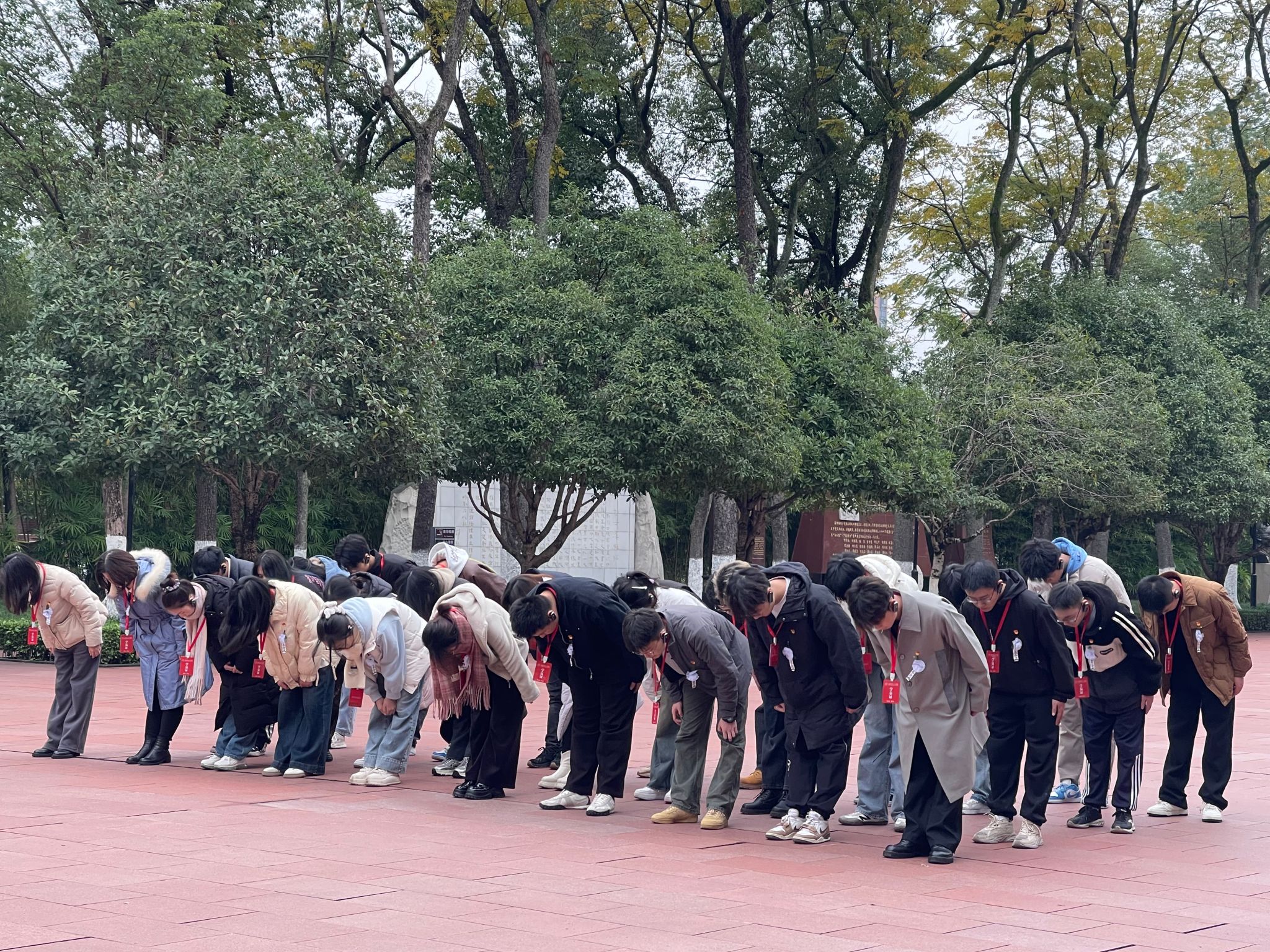 接着,老师带领学生党员们前往歌乐山烈士陵园,在“11·27”烈士公墓前,学生党员们怀着无比崇敬的心情,进行了庄重的烈士祭拜仪式。全体党员列队肃立,向革命烈士敬献花篮,为先烈默哀,向忠魂致敬。面对鲜红的党旗,党员们高举右拳,重温入党誓词,表达为党的事业毕生奋斗的决心。