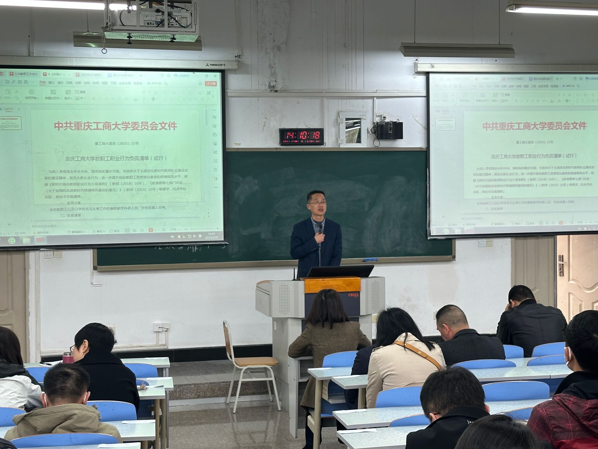 3月28日,完美体育官方网站在90308教室召开了师德师风建设大会。会议由党委书记杨娟主持,全院教职工参加会议。